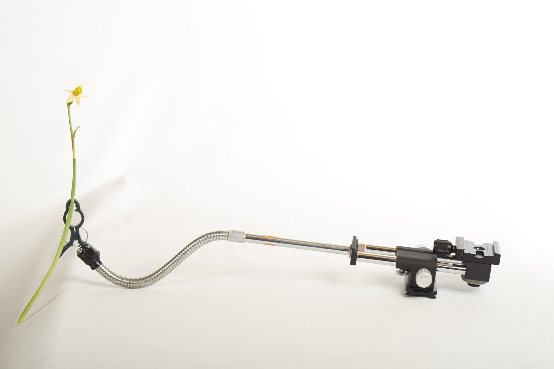 Ich habe mal aus zwei alten Lampen die Schwanenhälse gerettet und mir kam gestern beim Anblick meines Makroschlittens die zündende Idee zur Befestigung.